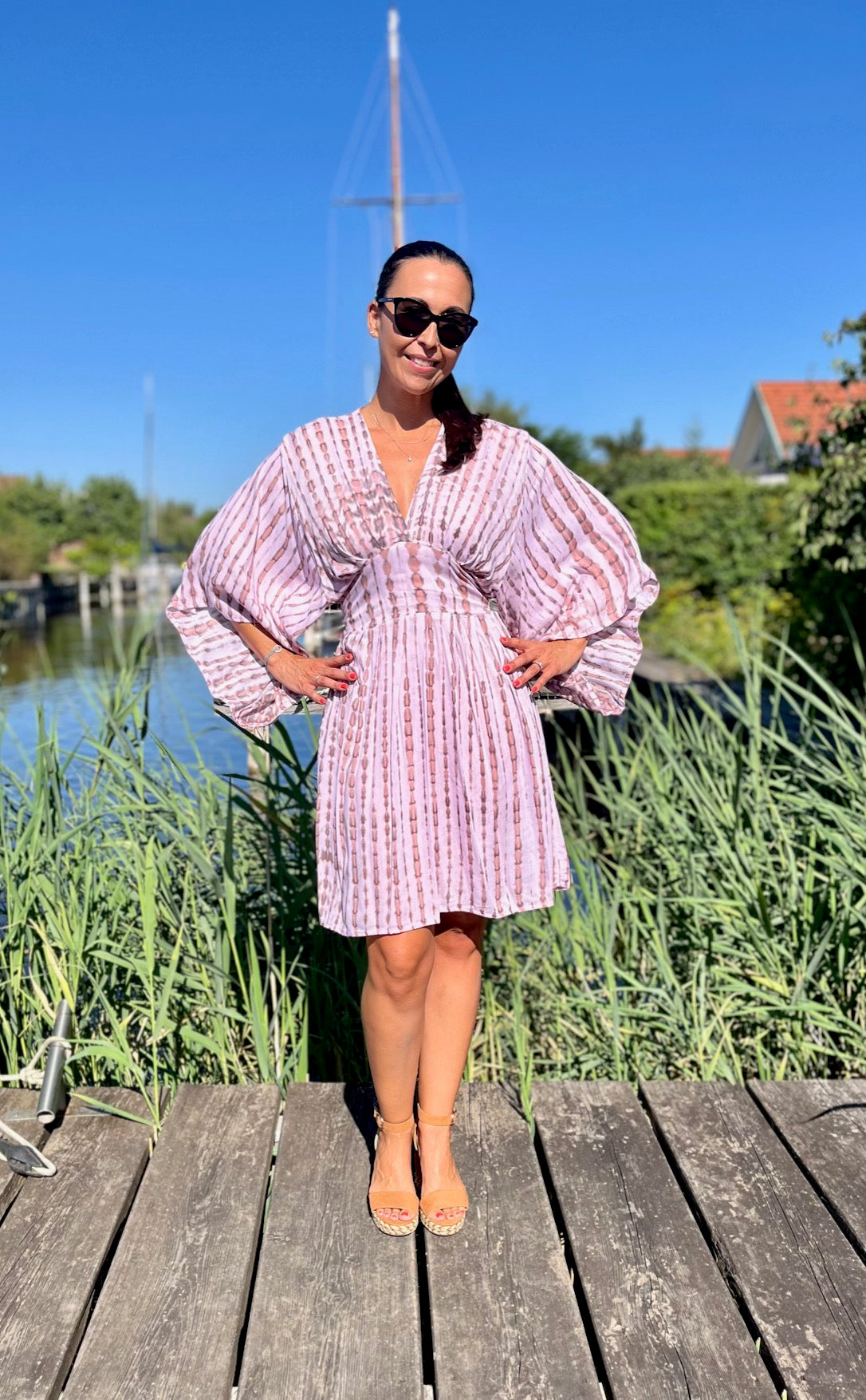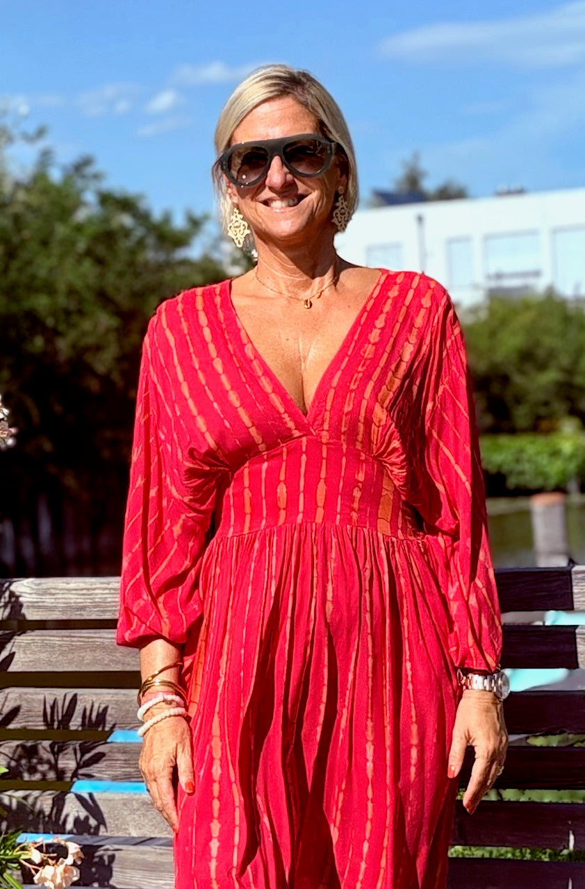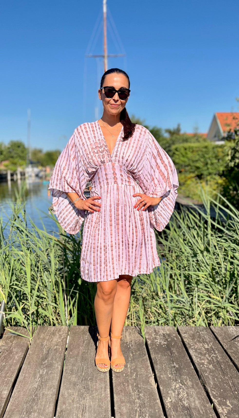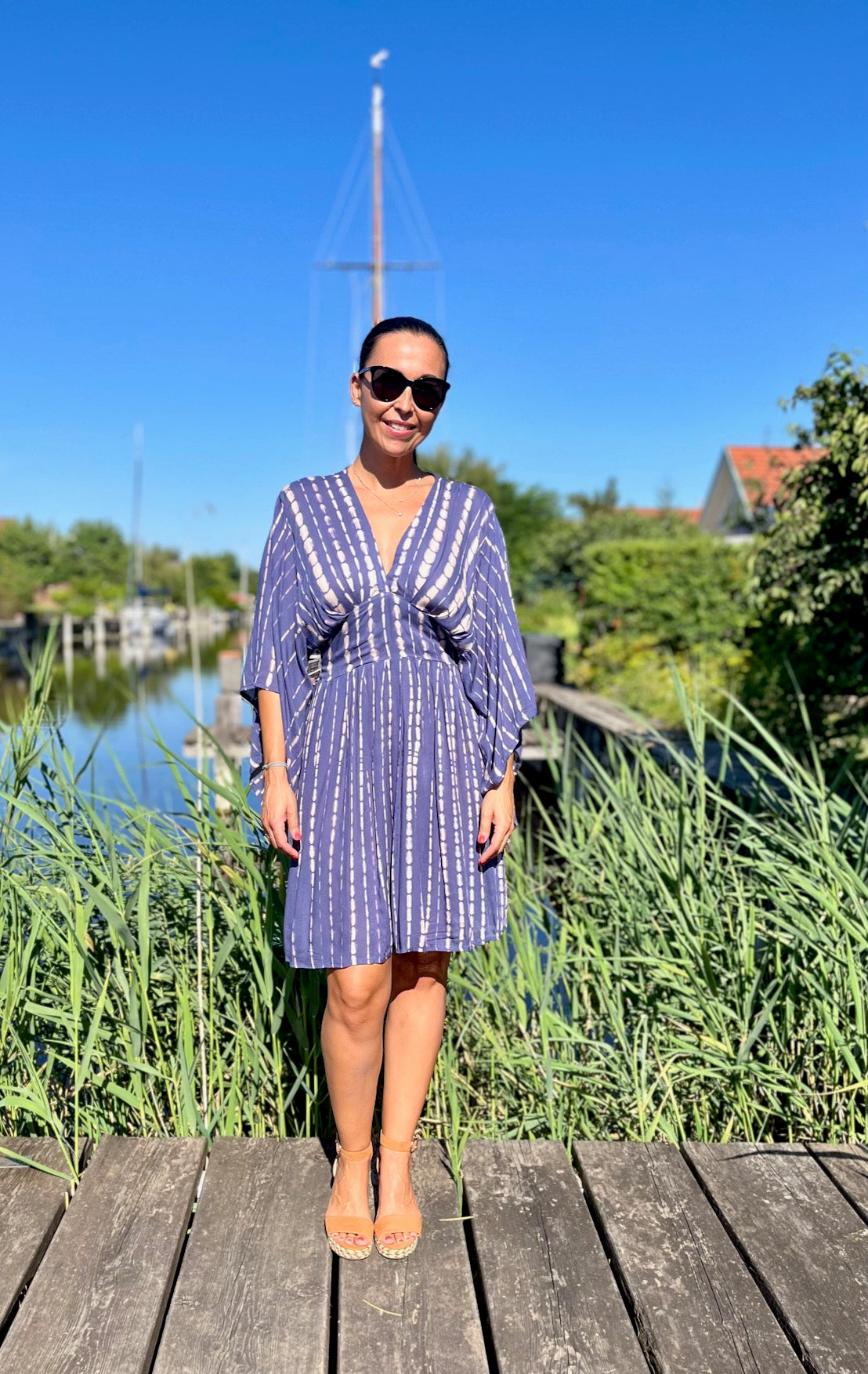 Stell dir vor, du spazierst am Strand entlang, eine sanfte Brise weht durch dein Haar – und dein Kaftan Dress "Alessia" schwingt mühelos mit. Dieses luftige Kaftan Dress, zusammengesetzt aus 100% Viskose, zeichnet sich durch seinen lockeren Schnitt und den eleganten, hohen Taillenbund aus, der jeder Frau eine fantastische Figur verleiht.