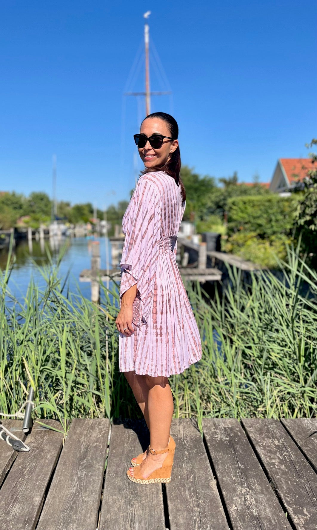 Hergestellt aus hochwertiger Viskose, trägt sich dieses Kleid angenehm auf der Haut und sorgt für ein unvergleichliches Tragegefühl, ganz gleich, ob du es als Stranddress oder lässiges Urlaubsdress einsetzt. Seine Vielseitigkeit liegt nicht nur im Design, sondern auch in der Leichtigkeit, mit der es sich kombinieren lässt.