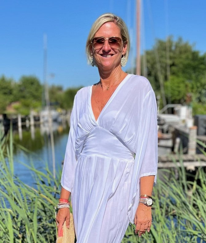 Unser Model Barbara, die 172 cm groß ist, zeigt den Kaftan mit Leichtigkeit, und ihre Ausstrahlung unterstreicht nur, wie wunderbar vielseitig und stylish das Dress ist. Sieh es dir an und lass dich verführen von der entspannten Eleganz des "Alessia"-Kaftans.