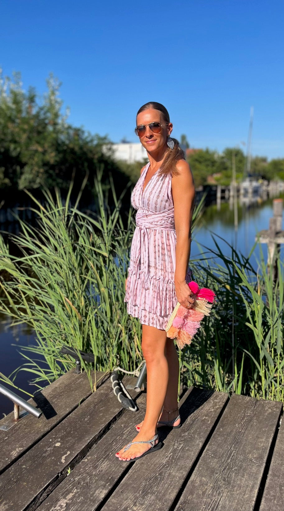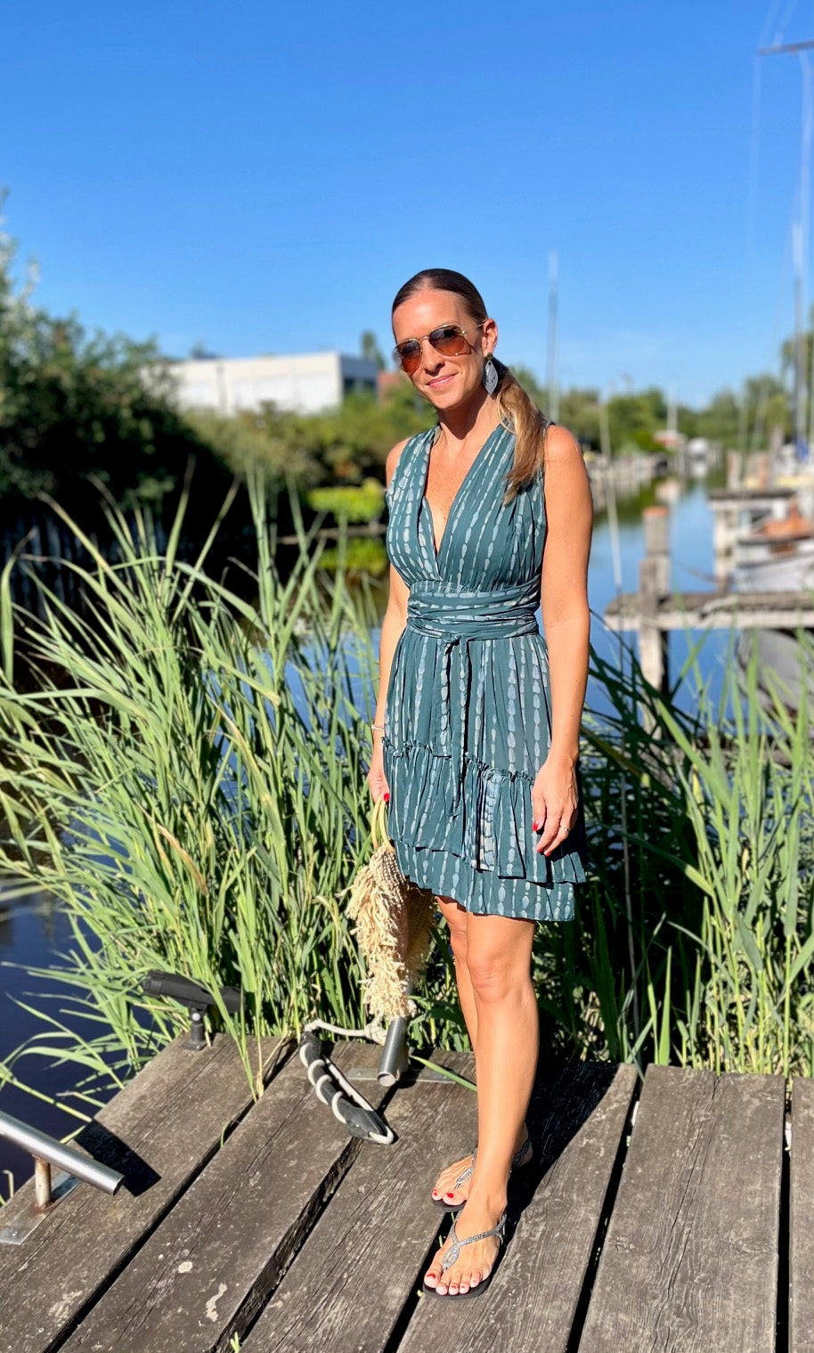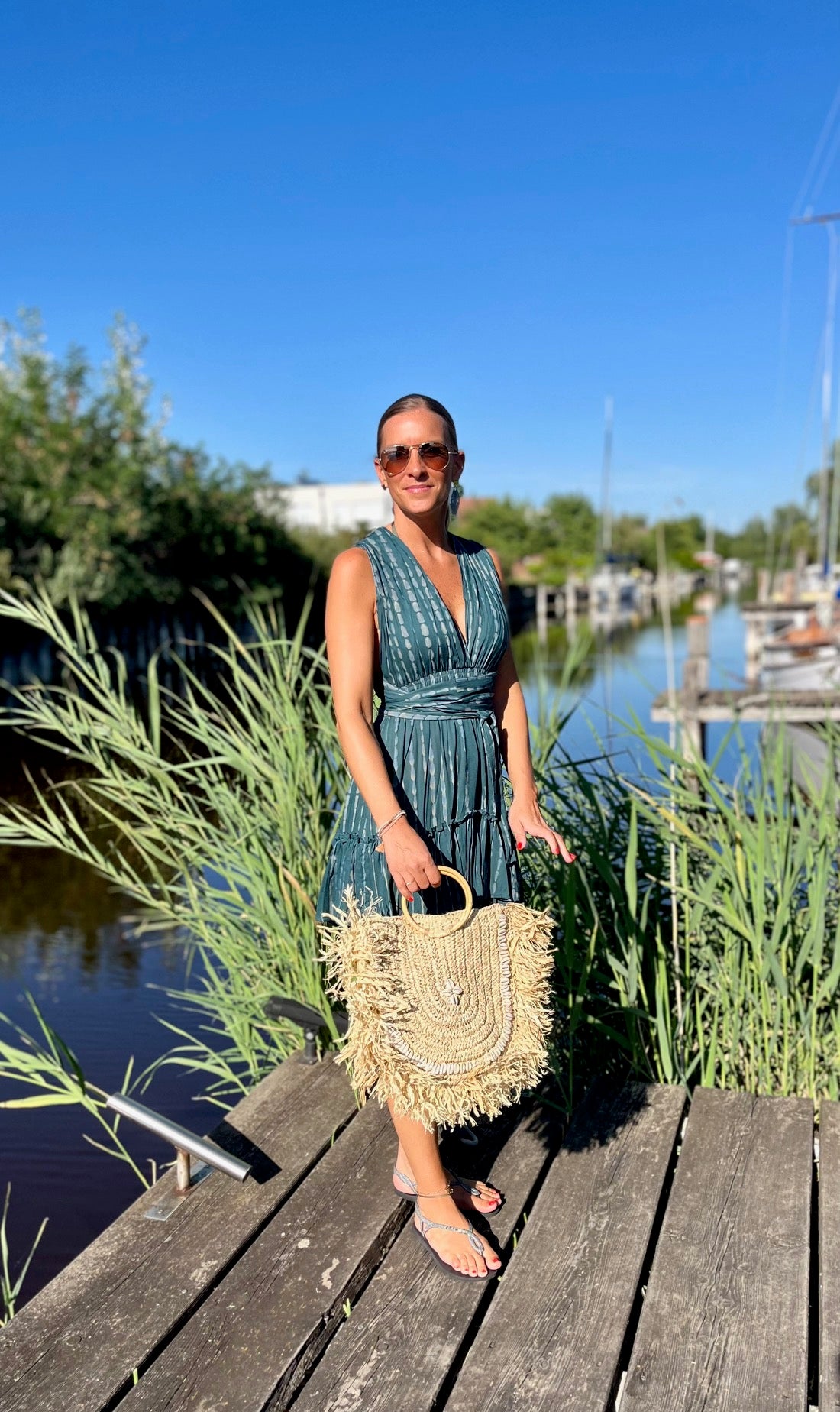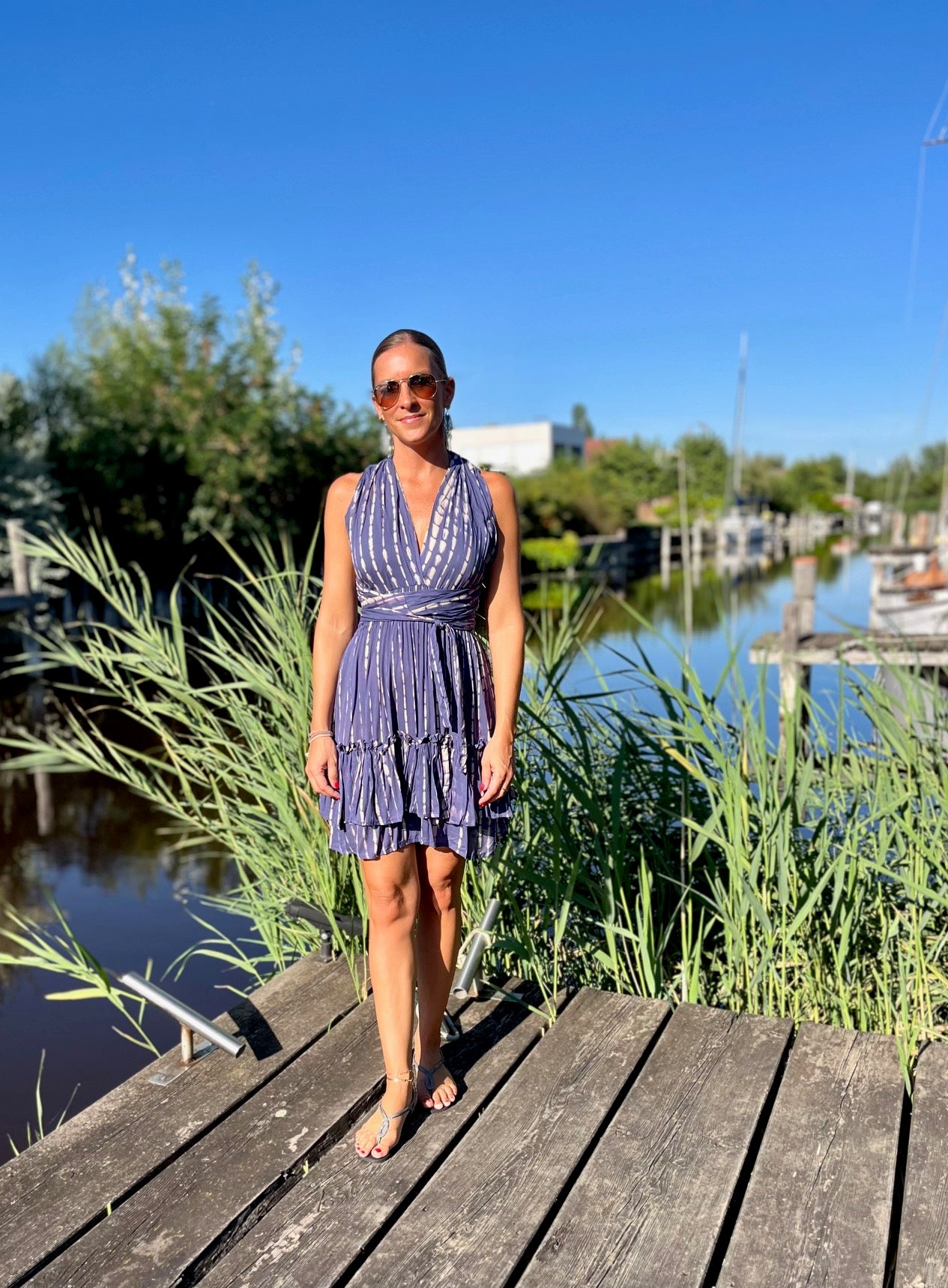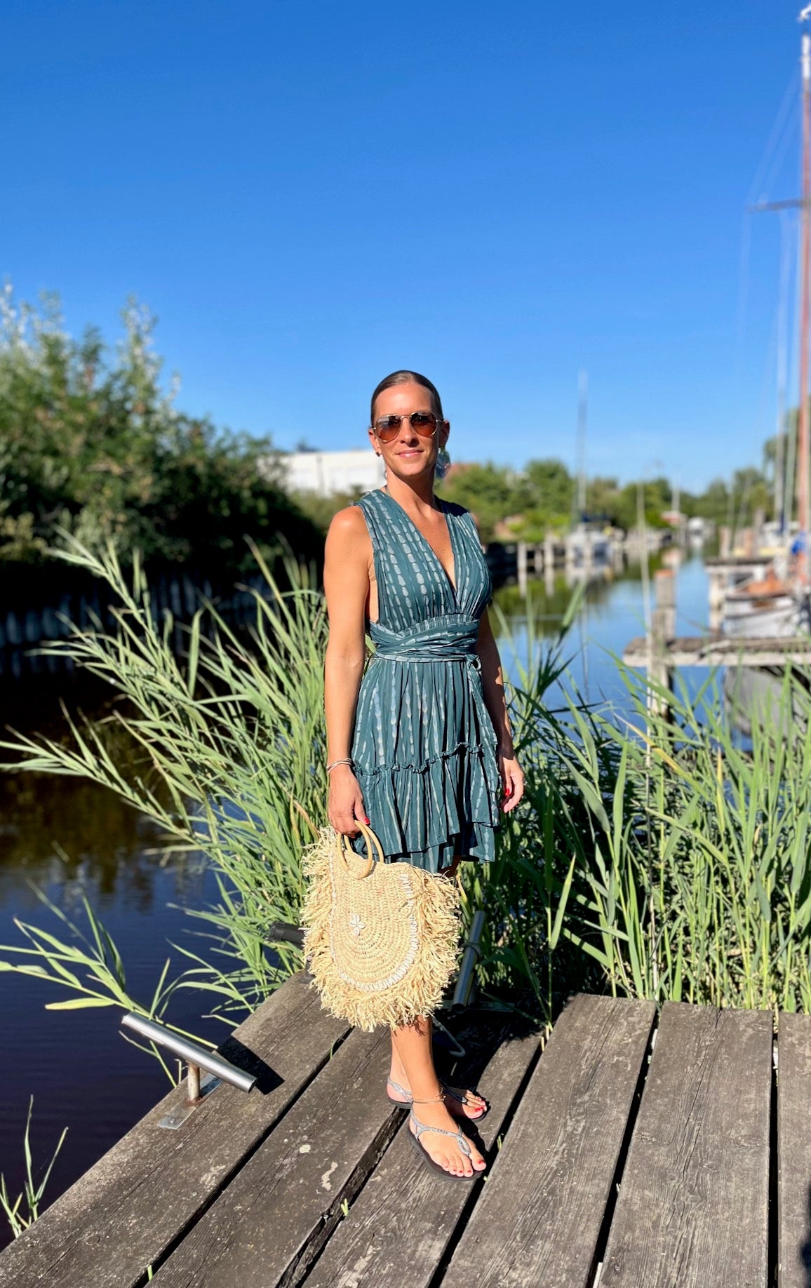 Bewundere, wie unser Model Marion, 165 cm groß, das Kleid trägt und lass Dich inspirieren. Das "Alicia"-Kleid ist in vier Farbvarianten erhältlich, so dass Du den Look findest, der am besten zu Deinem Stil passt. Ideal für Urlaub und Strand – dieses Kleid darf in Deiner Sommergarderobe nicht fehlen!