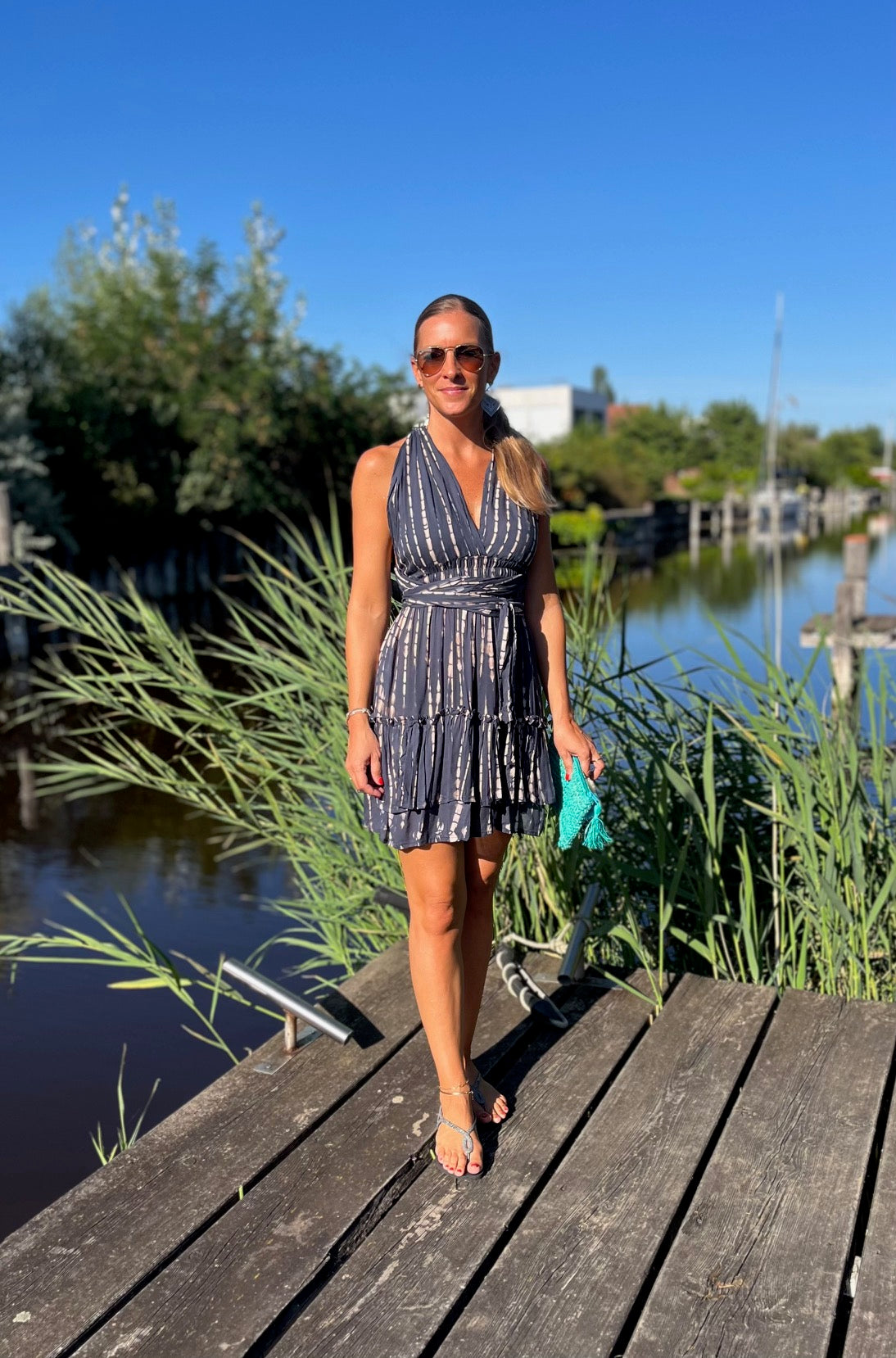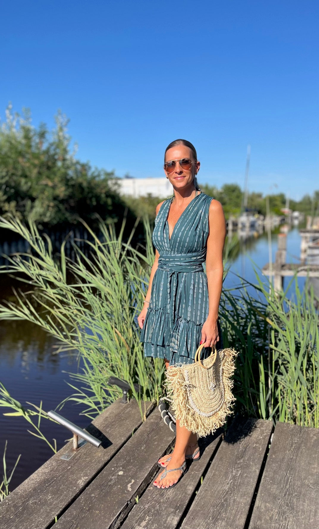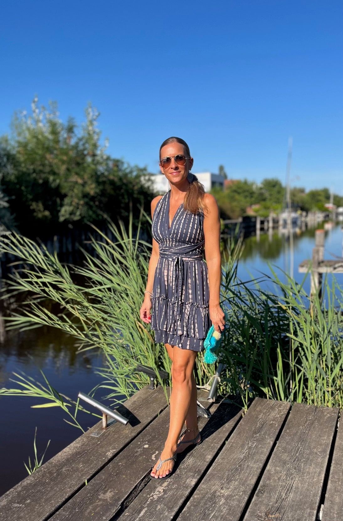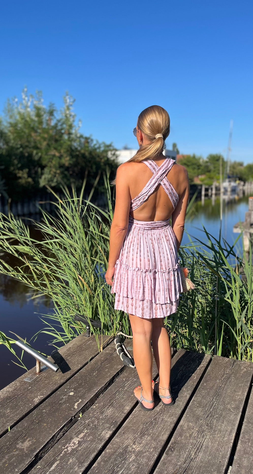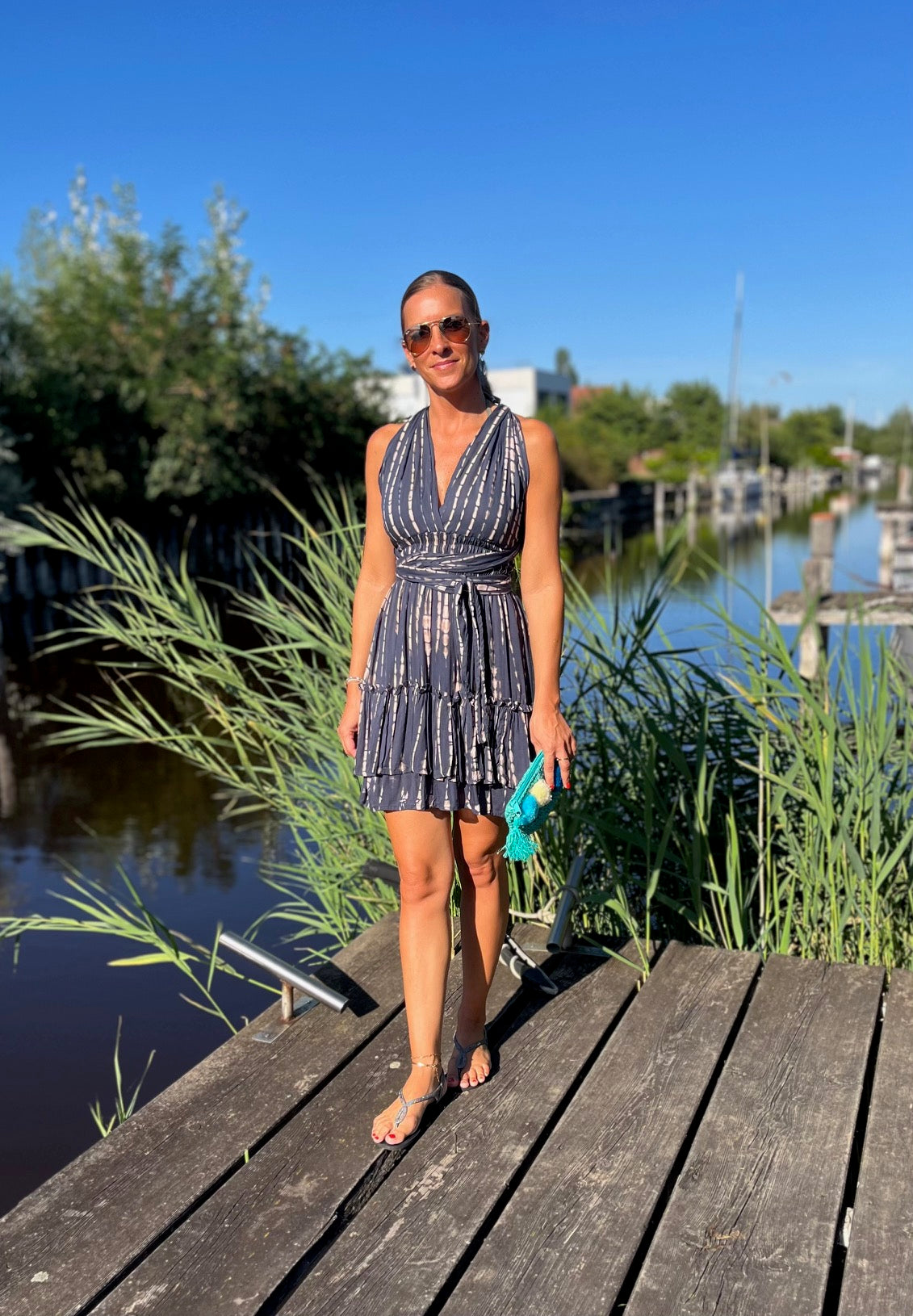 Bewundere, wie unser Model Marion, 165 cm groß, das Kleid trägt und lass Dich inspirieren. Das "Alicia"-Kleid ist in vier Farbvarianten erhältlich, so dass Du den Look findest, der am besten zu Deinem Stil passt. Ideal für Urlaub und Strand – dieses Kleid darf in Deiner Sommergarderobe nicht fehlen!