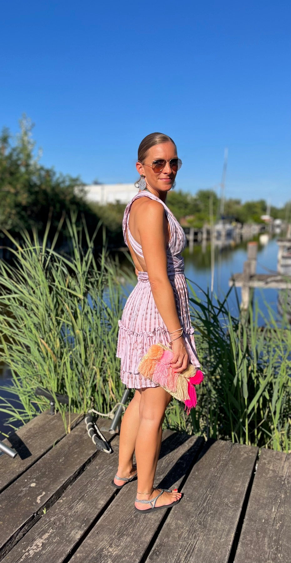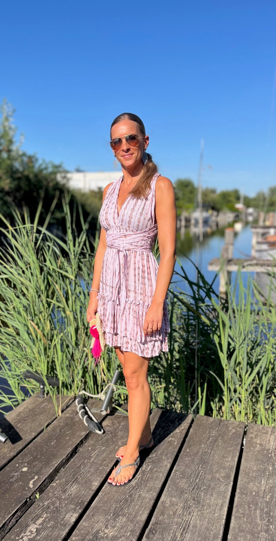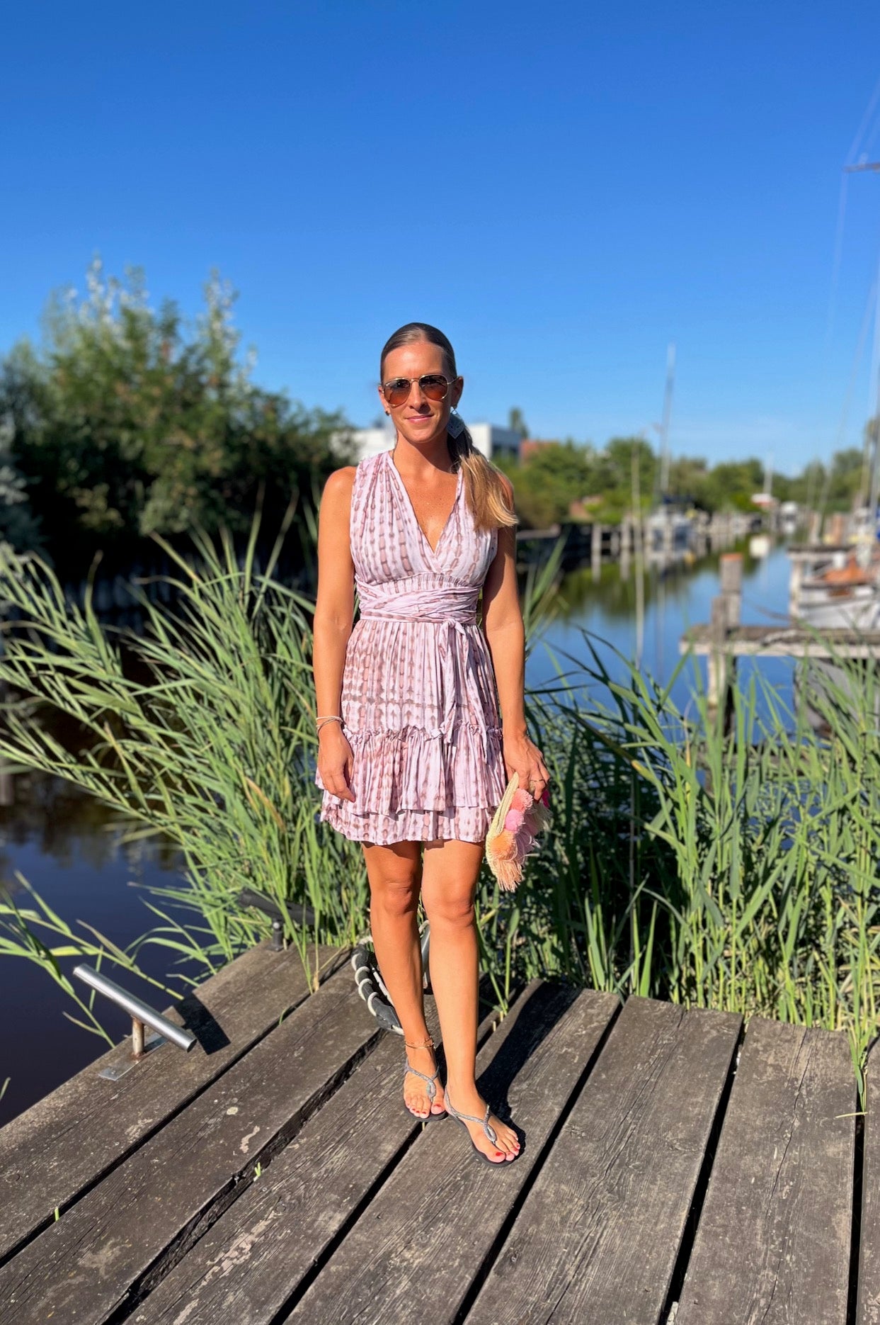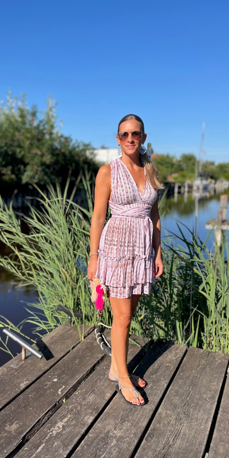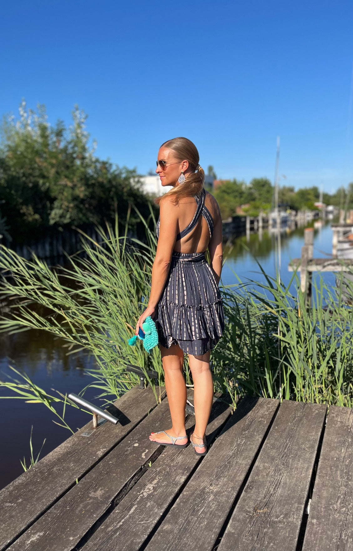 Bewundere, wie unser Model Marion, 165 cm groß, das Kleid trägt und lass Dich inspirieren. Das "Alicia"-Kleid ist in vier Farbvarianten erhältlich, so dass Du den Look findest, der am besten zu Deinem Stil passt. Ideal für Urlaub und Strand – dieses Kleid darf in Deiner Sommergarderobe nicht fehlen!