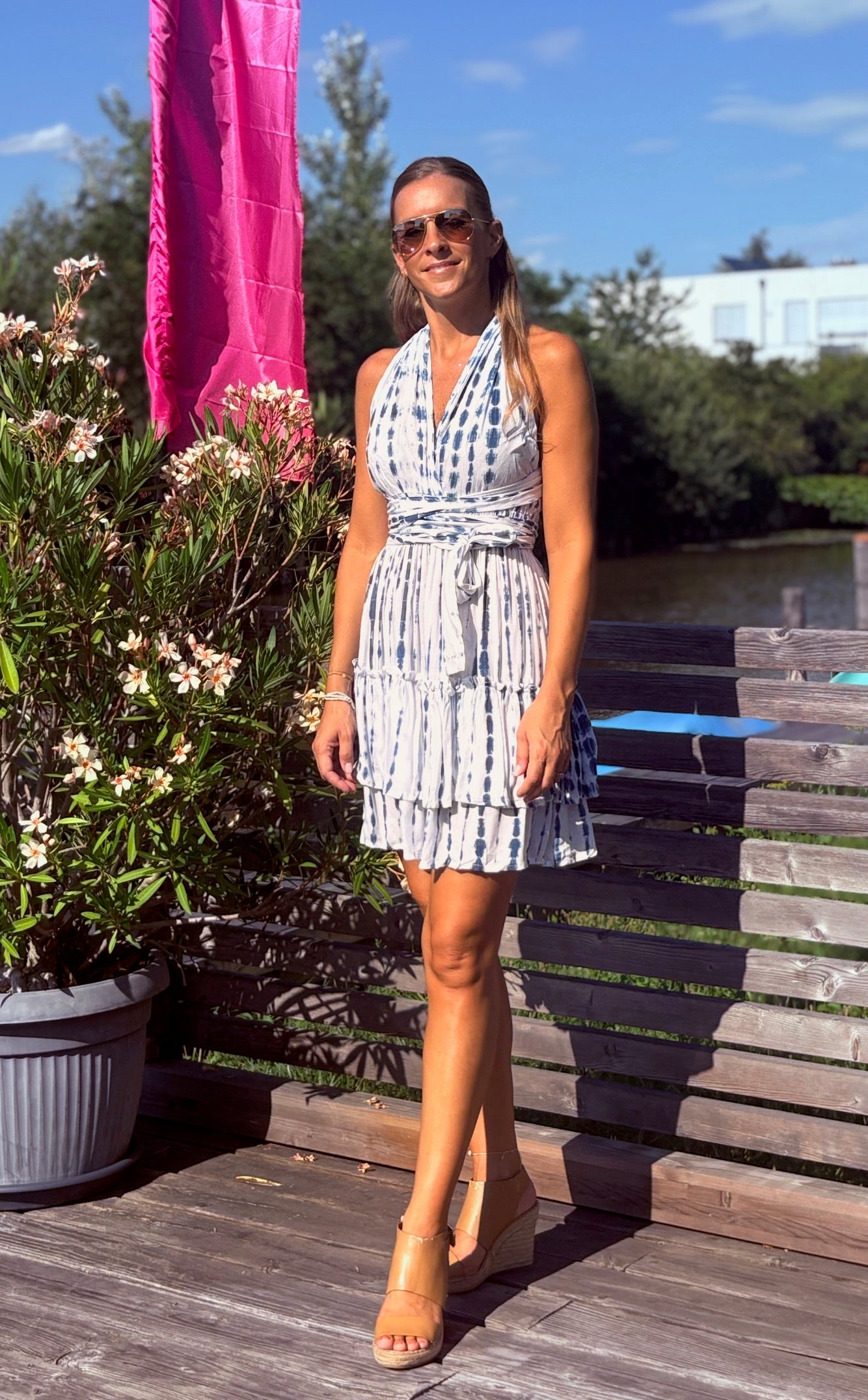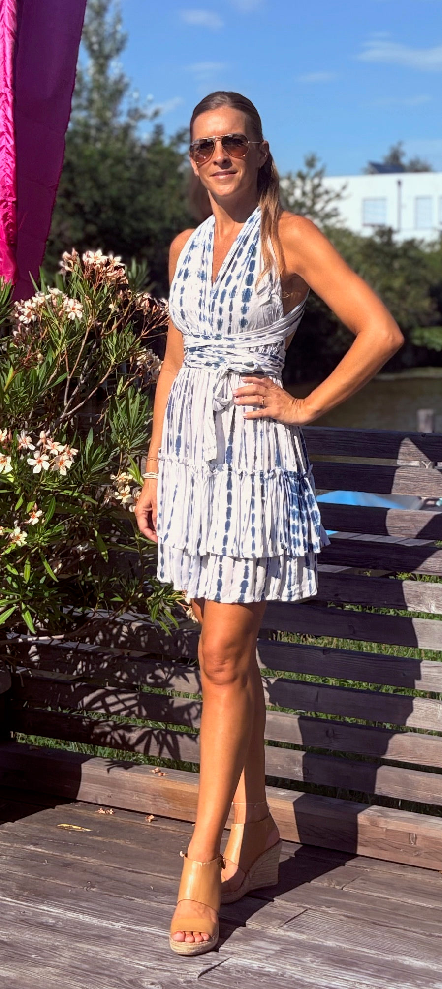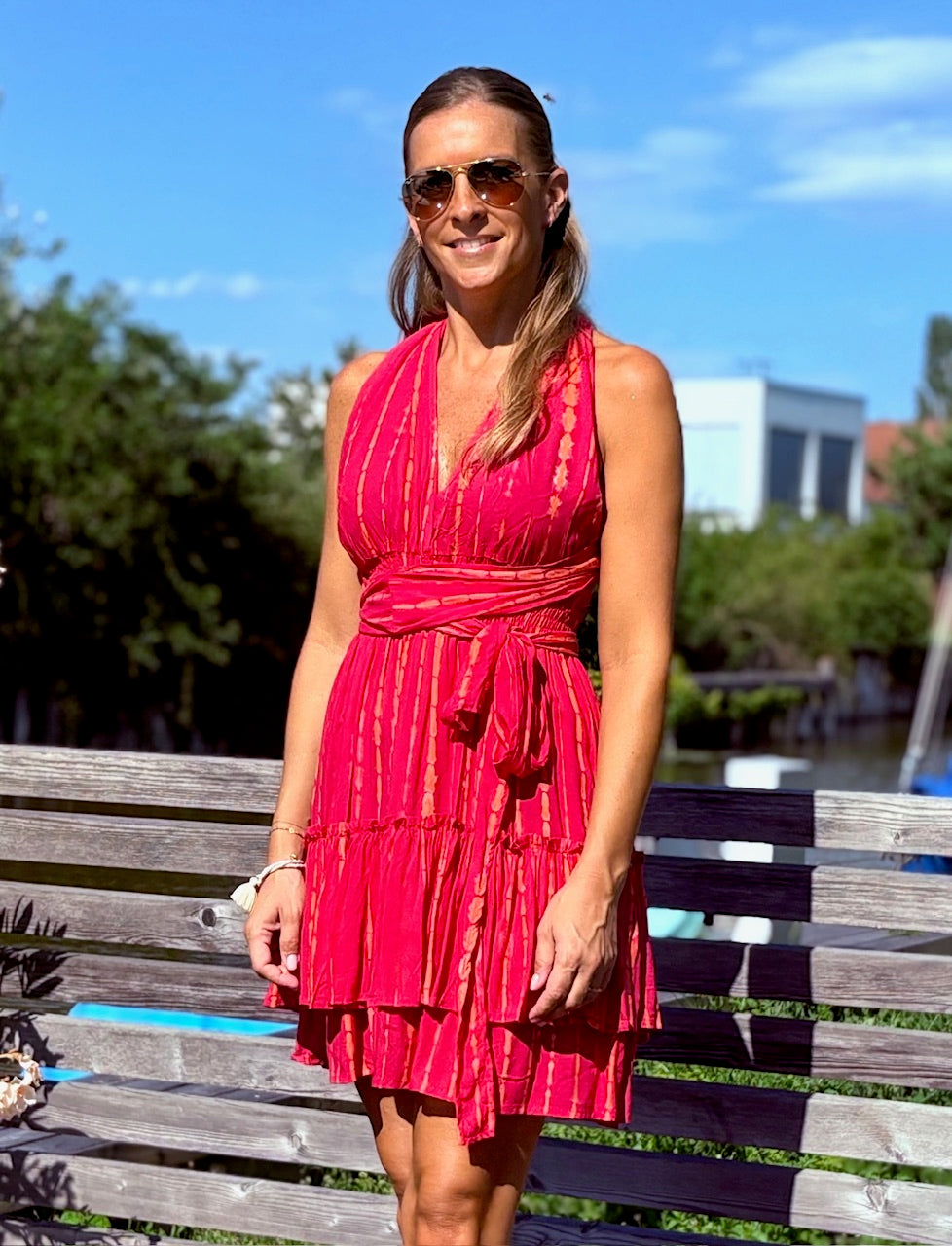Suchst Du nach einem Kleidungsstück, das Dir unzählige Styling-Möglichkeiten bietet und Dich mühelos von Strand zu Bar begleitet? Unser Mini Dress "Alicia" ist genau das richtige für Dich! Dieses charmante Minikleid ist aus 100% Viskose gefertigt, was nicht nur für ein luftiges Tragegefühl sorgt, sondern auch für sanft fließende Bewegungen. Der elegante Stoff fühlt sich traumhaft auf der Haut an und bietet hohe Atmungsaktivität, ideal für heiße Sommertage.