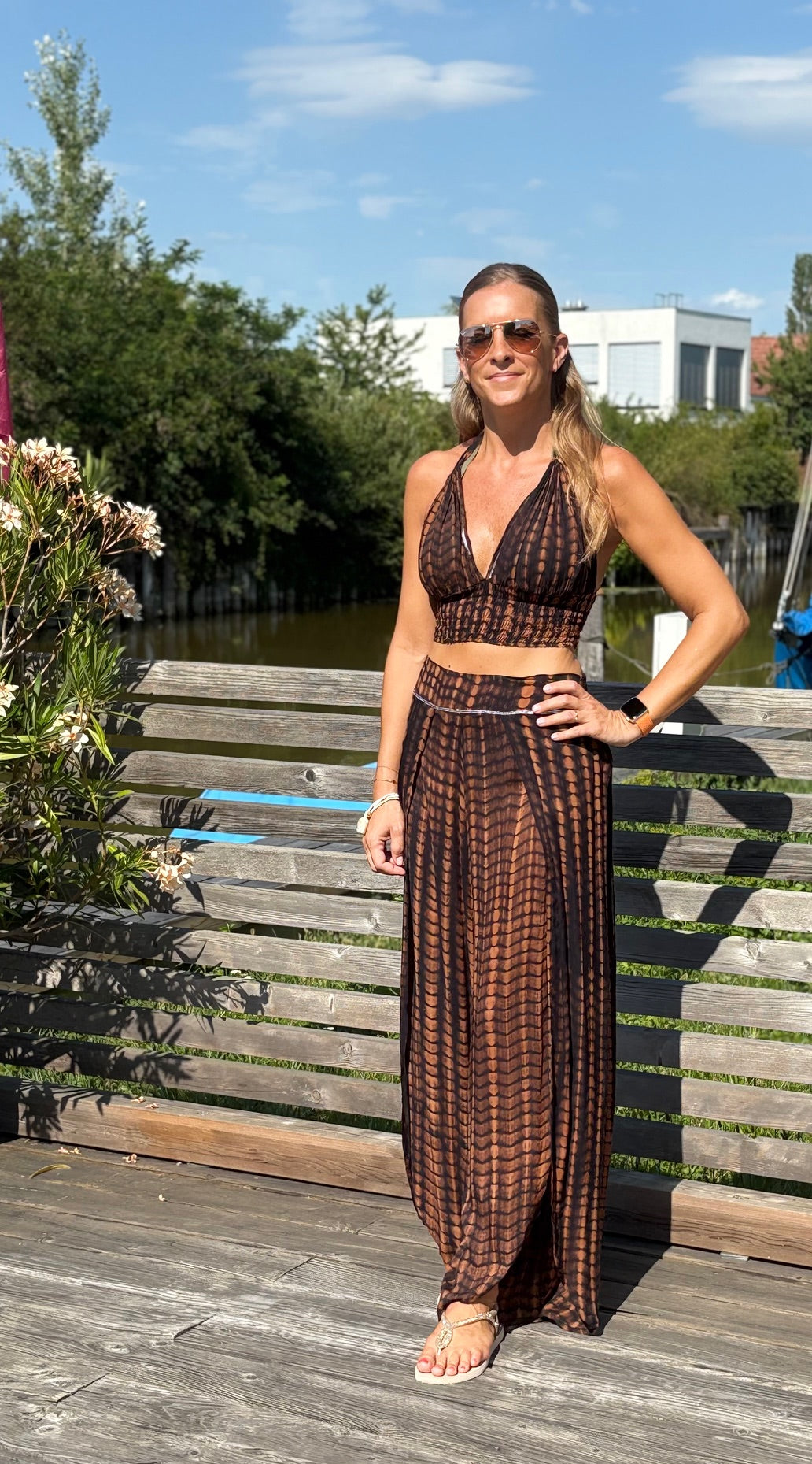 Die Vorteile des Sets „Jeanny“ liegen auf der Hand: Genieße die Leichtigkeit und Bewegungsfreiheit, die es bietet – sei es am Strand, beim Stadtbummel oder beim entspannten Abendessen am Meer. Die weichen, fließenden Materialien sorgen für maximalen Komfort, ohne auf Stil zu verzichten.