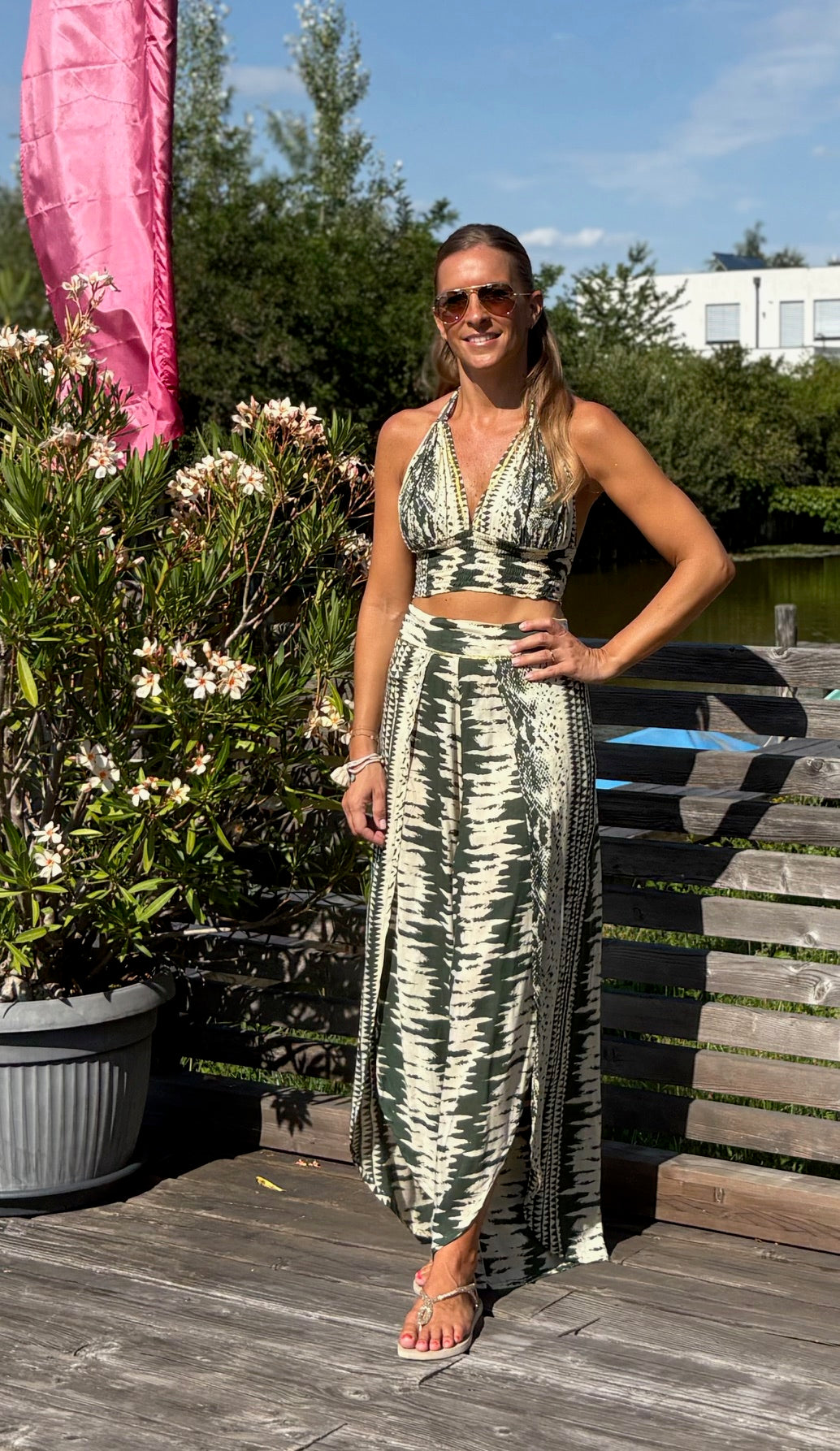 Styling-Tipp: Kombiniere das Set mit leichten Sandalen und einer großen Sonnenbrille für einen lässigen, aber eleganten Beach-Look. Für den Abend empfehlen wir elegante Ohrhänger und eine Clutch, um Dein Outfit abzurunden. Dank der vier verfügbaren Prints kannst Du Deinen persönlichen Favoriten wählen und Deinen individuellen Stil zum Ausdruck bringen.